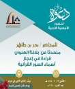 عرعر اليوم ـ منصور الدهمشي : يستضيف النادي الأدبي الثقافي بالحدود الشمالية المحاضر : بدر بن طاهر العنزي عضو هيئة التدريس بجامعة الحدود الشمالية في أمسية أدبية يتحدث عن بلاغة العنوان : قراءة في إعجاز أسماء السور القرآنية ، ويدير الأمسية أ.د. الحسين محمد القهوجي عضو هيئة التدريس بالجامعة، وذلك مساء يوم الاثنين ..