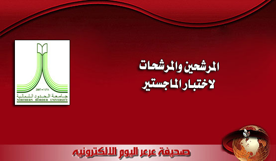 05-19-2013 01:28 AM عرعر اليوم ـ فايز المحيني :أعلنت جامعة الحدود الشمالية أسماء الطلاب والطالبات المرشحين لإختبار القبول بدرجة الماجستير للغة العربية والذي سبق أن أعلنت جامعة الحدود الشمالية عن فتح باب القبول وستكون المواعيد وفق التالي :