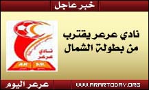اقترب الفريق الاول لكرة القدم بنادي عرعر من تحقيق لقب دوري اندية الحدود الشمالية لكرة القدم بنسبة كبيره بعد فوزه اليوم الخميس على منافسة التقليدي التضامن بهدف دون مقابل في المباراة التي جمعتهما على ملعب نادي التضامن برفحاء