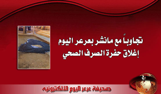 10-22-2014 05:49 PM عرعر اليوم ـ منصور الدهمشي :بعد نشر صحيفة عرعر اليوم خبر حفرة الصرف الصحي بشارع الدمام وماتشكله من خطر للماره تم التجاوب بشكل سريع مع الخبر بإغلاق الحفره بالأسفلت وإزالة الخطر الذي كانت تشكله .