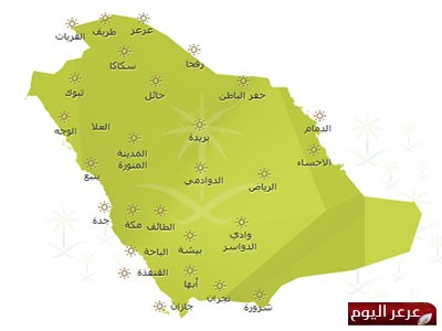 04-22-2017 10:56 AM عرعر اليوم ـ منصور الدهمشي :توقعت الهيئة العامة للأرصاد وحماية البيئة في تقريرها عن حالة الطقس اليوم السبت، استمرار نشاط الرياح السطحية المثيرة للأتربة والغبار، التي تحد من مدى الرؤية الأفقية على عدد من المناطق.