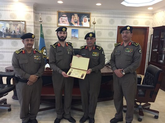 نيابة عن معالي مدير الأمن العام الفريق عثمان بن ناصر المحرج سلم اللواء ضيف الله بن جزاع العتيبي مدير شرطه منطقة الحدود الشمالية صباح هذا اليوم الخميس الموافق ١٤٣٨/٨/٢٢ العقيد سالم بن خلف العنزي شهادة تقدير نظرا لجهوده في المبادره بإنشاء برنامج توعوي لمختلف طلاب المراحل التعليميه وتعاونه البناء ودوره الايجابي في خدمه الامن. 2