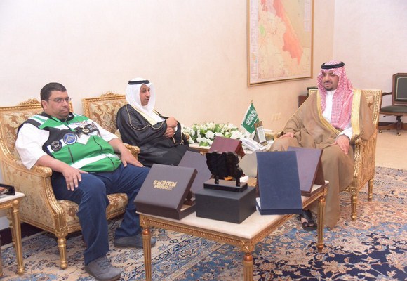 06-14-2017 09:20 PM عرعر اليوم ـ رائد حمد :التقى صاحب السمو الملكي الأمير فيصل بن خالد بن سلطان بن عبدالعزيز أمير منطقة الحدود الشمالية بمكتبه في الإمارة اليوم مدير مكتب الهيئة العامة للرياضة بالمنطقة خميس بن رضيمان العنزي يرافقه أعضاء فريق عرعر رايدرز للدراجات النارية .
