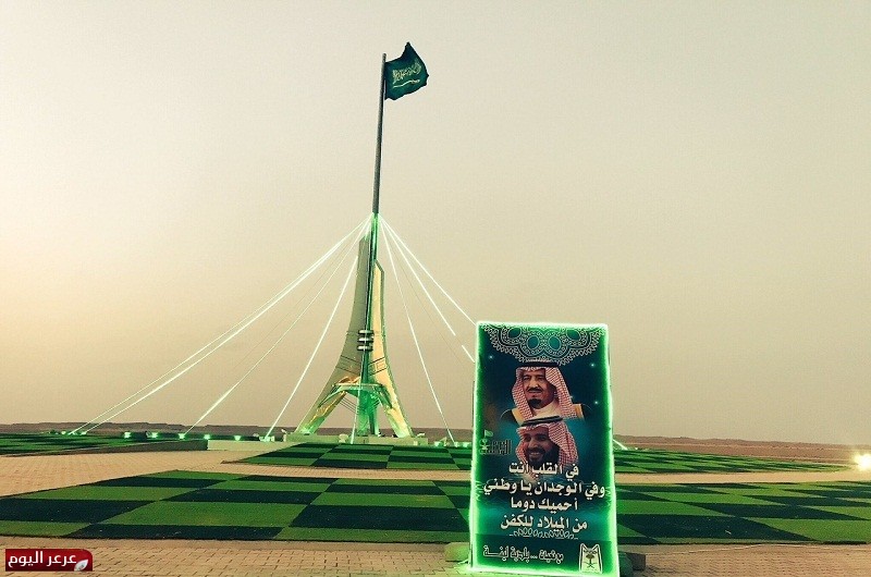 وشمل الاحتفاء تجميل أعمدة الإنارة وعمل عقود الزينة في الميادين العامة والشوارع ورفع العلم السعودي، إلى جانب اللوحات "البنرات"التي تحمل صور القيادة ،والعبارات الوطنية إحتفاءاً بيوم الوطن .