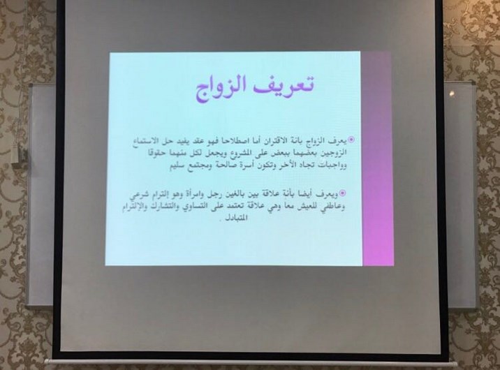 10-18-2017 01:49 AM عرعر اليوم ـ إبتسام فاضل :تواصل جمعية التنمية الأسرية ألفة بعرعر اليوم فعاليات البرنامج العاشر لتأهيل المقبلات على الزواج والمتزوجات حديثاً وذلك في قاعة الخزامى للتدريب لليوم الثاني على التوالي وبالتعاون مع مؤسسة محمد وعبدالله ابراهيم السبيعي الخيرية حيث كانت المتحدثة أ/حمدية بطي العنزي أخصائية نفسية في مركز الأرشاد الأسري بعرعر ،وقدتناولت في محورها مايتعلق بالجانب النفسي والأجتماعي في الحياة الزوجية ،ومراحل الحياة الزوجية وأسس وأركان الزواج الناجح وأنماط الأزواج في التعامل مع الأسرة وتخلل ذلك العديد من الأنشطة والتدريبات التي تفاعل معها المتدربات بشكل رائع وفي النهاية البرنامج تم تقديم شهادة شكر وتقدير من قبل جمعية ألفه للمدربة:حمدية بطي.
