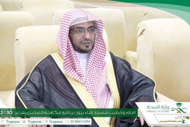بمشورة كريمة من صاحب السمو الملكي الامير فيصل بن خالد بن سلطان آل سعود حفظه الله أمير منطقة الحدود الشمالية زار فضيلة الشيخ صالح بن عواد المغامسي إمام وخطيب مسجد قباء بالمدينة المنورة برنامج مكافحة التدخين بعرعر و أطلع فضيلته على أقسام المجمع التوعوية التثقيفية بعد ذلك زار فضيلته المعرض التقني التفاعلي والذي يعد الأول على مستوى المملكة حيث أثنى فضيلته على التجهيزات التقنية العالية والأفكار الإبداعية المصورة في المعرض وفي اخر الزيارة قدم فضيلته شكره لسمو امير منطقة الحدود الشمالية الذي شدد على فضيلته بزيارة المجمع والإطلاع على مافيه حيث يعتبر من أهم الواجهات المشرفة للمنطقة ولأبنائها كافه.