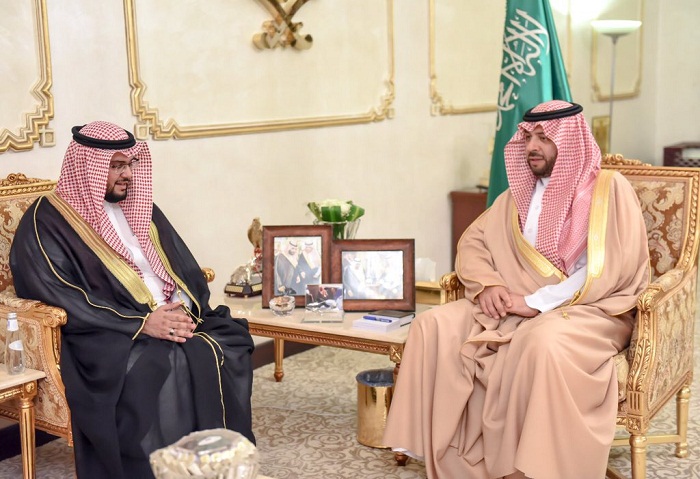 ورحب سموه في مستهل الاستقبال بمدير عام الخطوط السعودية المعين، متمنياً له وملائه منسوبي المكتب كافة, التوفيق والسداد في المهام والأعمال والمناطة بهم.