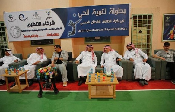 عرعر اليوم ـ فارس الشملاني :اختتمت بطولة تنمية الحي لكرة الطائرة للقطاع الصحي بمحافظة طريف ليلة أمس الاحد الموافق 27 / 7/ 1439 هـ بمقر نادي الحي للبنين بمدرسة أبو موسى الاشعري برعاية ودعم من لجنة التنمية الاجتماعية بطريف وذلك تحت رعاية محافظ محافظة طريف الاستاذ بدر بن نجر الصقر حيث سلم الكأس والجوائز للفرق الفائزة في المباراة الختامية التي أقيمت بين فريقي مركز صحي الشرقي وفريق الإدارة,والتي فاز فيها مركز صحي الشرقي