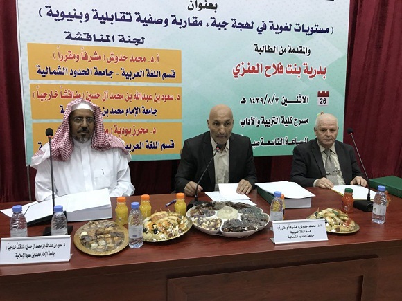 عرعر اليوم ـ رائد حمد :نالت الأستاذة بدرية بنت فلاح العنزي درجة الماجستير بمسار اللغة والنحو بتقدير "ممتاز" وذلك عن الرسالة المقدمة بعنوان (مستويات لغوية في لهجة جبة ، مقاربة وصفية تقابلية وبنيوية) من جامعة الحدود الشمالية .