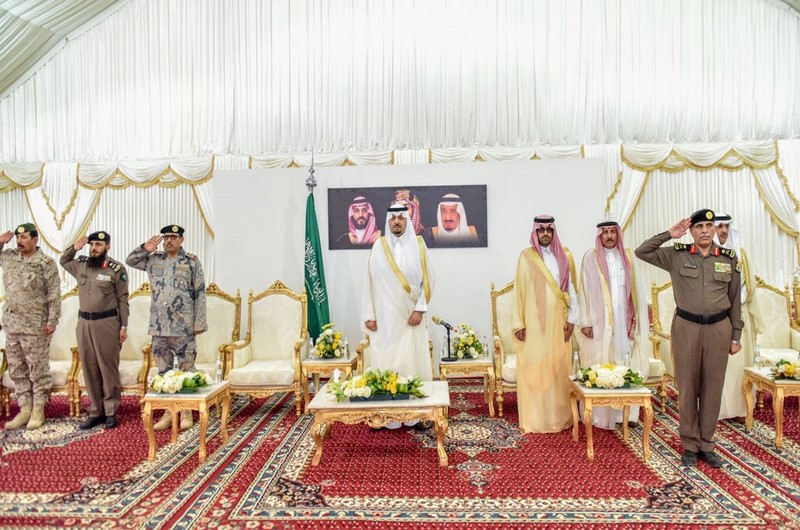 وفور وصول سموه مقر الحفل عُزف السلام الملكي ، ثم بدء الحفل بتلاوة آيات من القرآن الكريم ، ثم القيت كلمة الأهالي و القيت قصيدة شعرية بهذه المناسبة وتجول سموه في مقر الاحتفالات .