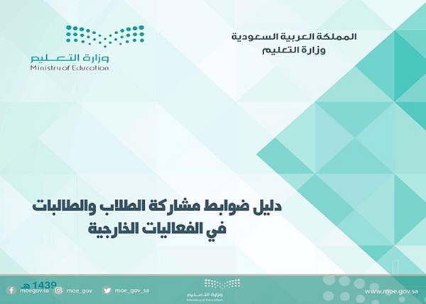 وتابع: يبين الدليل أن ضوابط مشاركة الطلاب والطالبات في الفعاليات الخارجية، تطبق على المشاركات التي تشرف عليها الجهات المعنية بالوزارة، وهي وكالتي التعليم "بنين- بنات" وكالة التعليم الأهلي والإدارة العامة للإعلام والعلاقات العامة.