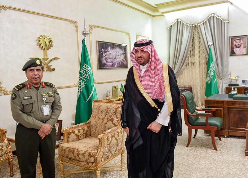 عرعر اليوم ـ رائد الدهمشي :التقى صاحب السمو الملكي الأمير فيصل بن خالد بن سلطان بن عبدالعزيز أمير منطقة الحدود الشمالية بمكتب سموه في الإمارة مدير عام الجوازات بالمملكة اللواء سليمان بن عبدالعزيز اليحيى والوفد المرافق له.