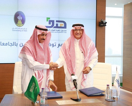 ووقع الاتفاقية مدير عام صندوق تنمية الموارد البشرية الدكتور محمد بن أحمد السديري، ومعالي مدير جامعة حائل الأستاذ الدكتور خليل بن ابراهيم البراهيم، حيث تأتي الاتفاقية في إطار جهود الصندوق لدعم جهود تدريب وتوظيف القوى العاملة الوطنية في منشآت القطاع الخاص، من خلال برامجه العديدة، وكذلك إيجاد آليات دعم مناسبة للوصول إلى تحقيق أهدافه.