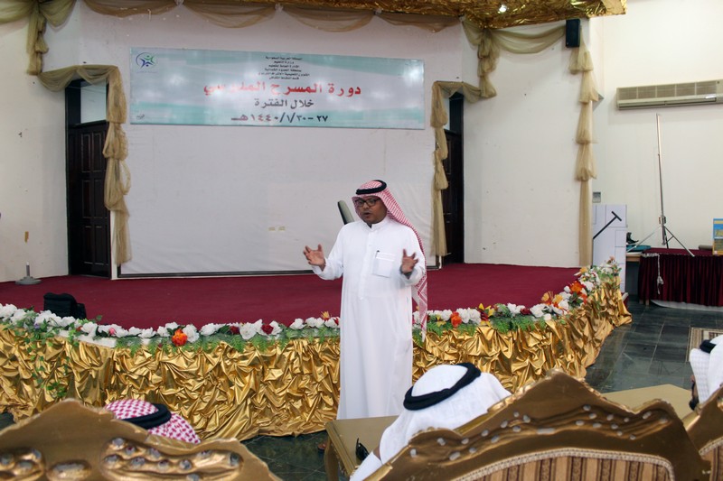 وأكد مستشار المدير العام ومدير ادارة النشاط الطلابي الأستاذ سليمان بن صالح الحميد أن الدورة تستمر حتى الثلاثين من شهر محرم الجاري يتدرب خلالها المعلمين على تعريف المسرح المدرسي واهدافه وادوار الممثل ومحتويات المسرح والسنوغرافيا وعناصر العرض المسرحي المدرسي واستخدامات الديكور المسرحي وتوظيف بالعمل الفني .