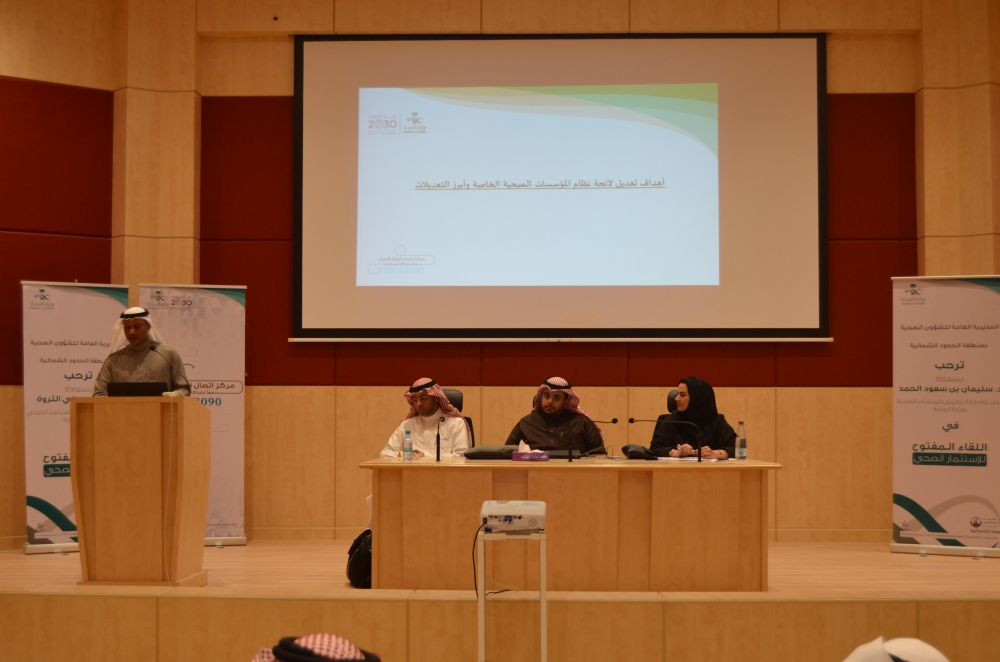 وركز اللقاء المفتوح على واقع الاستثمار الصحي في منطقة الحدود الشمالية بما يتناسب مع الخدمات الصحية والتقنيات الطبية وسبل التطوير في القطاع الصحي الخاص لتحديد الفرص المتاحة للتطورات في مجال الرعاية الصحية بالقطاع الخاص ورفع مستوى جودة الخدمات الصحية المقدمة لمتلقي الخدمة والحث على الاستثمار في القطاع الخاص للخدمات الصحية من قبل المستثمرين في القطاع الصحي الخاص وفق خطط واستراتيجيات تحقق أهداف رؤية 2030 فيما يتعلق بالجانب الصحي الخاص في المنطقة وتخلل اللقاء مناقشات وحوار مفتوح للمشاركين والحضور.