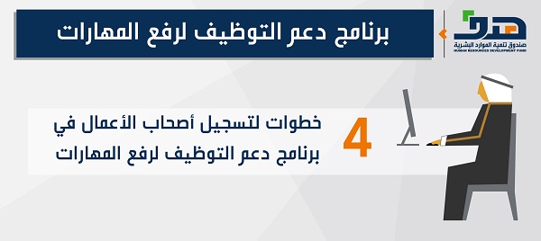 أتاح صندوق تنمية الموارد البشرية (هدف)، للمنشآت أربعة خطوات ميسرة للتسجيل والاستفادة من برنامج دعم التوظيف لرفع المهارات، تبدأ بتسجيل المنشأة في البوابة الوطنية للعمل (طاقات)