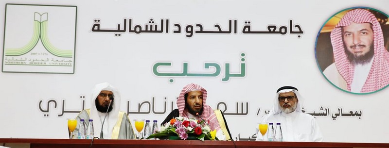 عرعر اليوم _ رائد الدهمشي :استقبل معالي مدير جامعة الحدود الشمالية الأستاذ الدكتور محمد بن يحيى الشهري، يوم الاثنين 10/8/1440هـ عضو هيئة كبار العلماء، والمستشار بالديوان الملكي، معالي الشيخ الدكتور سعد بن ناصر بن عبدالعزيز الشثري، والذي ألقى محاضرة عن "واجبات الطالب تجاه دينه ووطنه"، وذلك على مسرح كلية التربية والآداب بمدينة عرعر في تمام الساعة الواحدة ظهرًا، بحضور كل من سعادة وكلاء الجامعة، وعمداء الكليات والعمادات المساندة وعددٍ من أعضاء هيئة التدريس والطلاب، وتم نقلها عبر تقنية البث المرئي إلى جميع فروع الجامعة ( طلاب وطالبات) في محافظات رفحاء وطريف والعويقيلة.