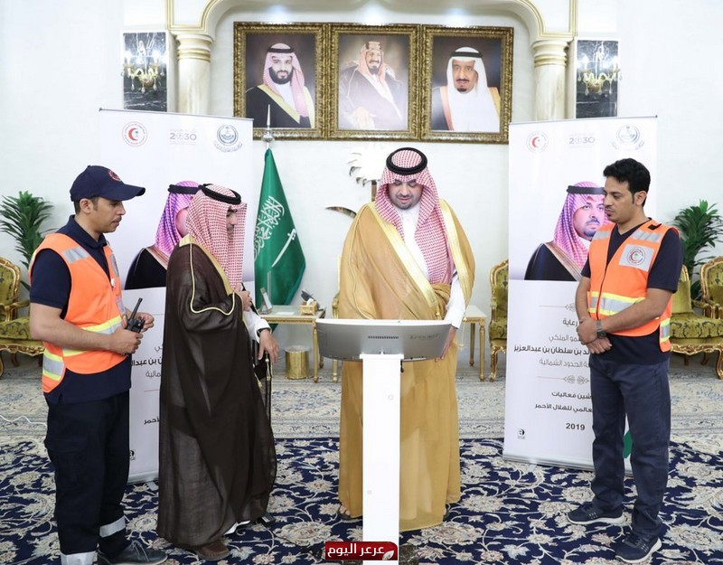 عرعر اليوم _ رائد حمد:دشن صاحب السمو الملكي الأمير فيصل بن خالد بن سلطان بن عبدالعزيز أمير منطقة الحدود الشمالية في مكتب بالإمارة اليوم، فعاليات اليوم العالمي للهلال الأحمر بحضور مدير عام فرع هيئة الهلال الأحمر السعودي بالمنطقة، محمد بن نايف الجارد وعدد من منسوبي الفرع.