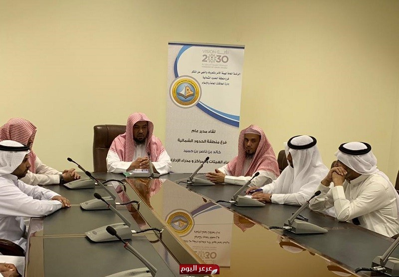 كما وجه فضيلته إدارة التوعية والتوجيه بالفرع بدعم الهيئات والمراكز* بمطبوعات توعوية مشدداً على التركيز على الحضور الميداني وبذل التوجيه والإرشاد والنصح بالحكمة واللين والموعظة الحسنة، مشيداً*بجهود الأعضاء الميدانية و بالدعم المستمر من صاحب السمو الملكي الأمير فيصل بن خالد بن سلطان بن عبدالعزيز أمير منطقة الحدود الشمالية ومتابعة مباشرة من معالي الرئيس العام الشيخ الدكتور عبدالرحمن بن عبدالله السند لتحقيق تطلعات حكومة خادم الحرمين الشريفين وسمو ولي عهده الأمين أيدهم الله.