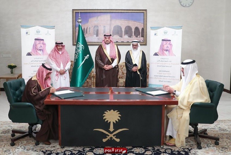عرعر اليوم _ رائد الدهمشي :شهد صاحب السمو الملكي الأمير فيصل بن خالد بن سلطان بن عبدالعزيز أمير منطقة الحدود الشمالية اليوم، توقيع اتفاقية التعاون بين جامعة الحدود الشمالية، ومثلها عميد عمادة خدمة المجتمع التعليم المستمر الدكتور معن المدني، واللجنة الوطنية لرعاية السجناء والمفرج عنه ” تراحم ” بالمنطقة ومثلها رئيس اللجنة سعود محمد الرويلي.