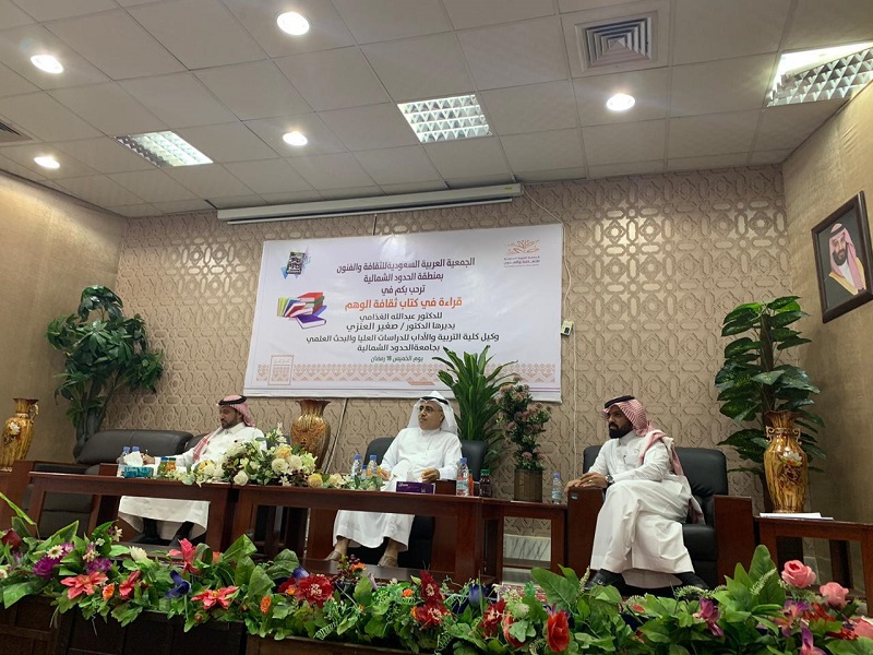 عرعر اليوم _ رائد حمد:أقامت جمعية الثقافة والفنون بمنطقة الحدودالشمالية وضمن البرنامج الثقافي ندوة ثقافية ضمن قراءة في كتاب (ثقافة الوهم )للدكتور عبدالله الغذامي وقدأدارها الدكتورصغيرالعنزي وكيل كلية التربية والاداب للدراسات العليا والبحث العلمي وبمشاركة الأستاذ صالح الحمادوالأستاذ محمدمهجع العنزي والأستاذة انتصار الفريح.