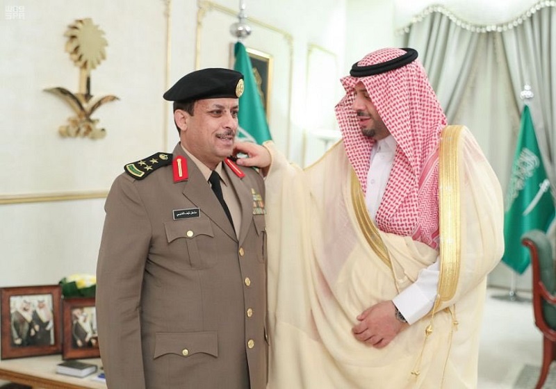 عرعر اليوم _ رائد حمد:قلد صاحب السمو الملكي الأمير فيصل بن خالد بن سلطان بن عبدالعزيز أمير منطقة الحدود الشمالية، بمكتب سموه بالإمارة اليوم، مدير عام مكافحة المخدرات بالمنطقة العميد مشعل العتيبي رتبته الجديدة، بعد صدور الأمر السامي الكريم بترقيته.
