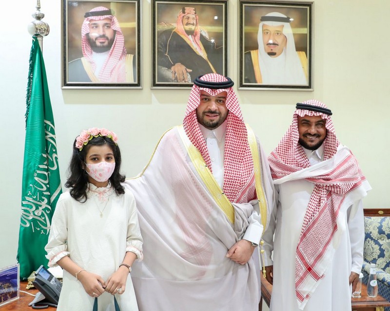 عرعر اليوم ــ جسار مطيران :استقبل صاحب السمو الملكي الأمير فيصل بن خالد بن سلطان بن عبدالعزيز أمير منطقة الحدود الشمالية اليوم، الطفلة روند جميل الرويلي، يرافقها والدها ووالدتها.