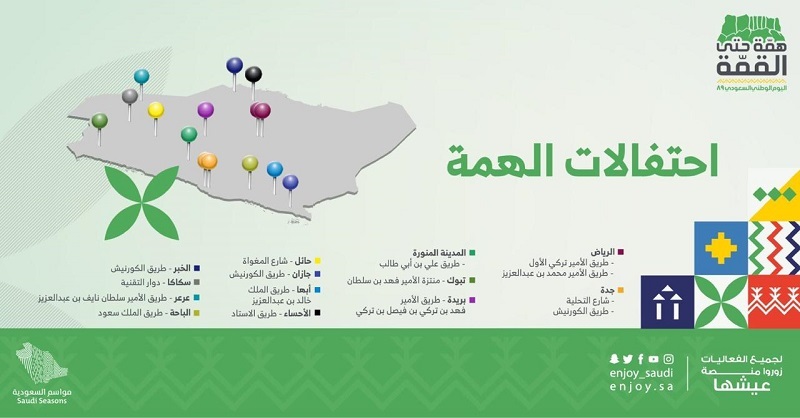 عرعر اليوم _ جسار مطيران:أعلنت الهيئة العامة للترفيه المشرفة على موسم اليوم الوطني عن أن احتفالات الهمة ستفتتح أبوابها من يوم غدٍ (الخميس) 19 إلى الإثنين 23 سبتمبر من الساعة 3 إلى 11 مساء، عبر بوابات صممت كبوابات قصر المصمك الذي يحمل رمزية نوعية للمملكة، كما ستتواجد احتفالات الهمة في موقعين بكل من الرياض وجدة، فيما ستكون في موقع واحد ببقية مناطق المملكة. حيث سيحظى الزائر للفعالية بمجموعة متنوعة وفريدة من الأنشطة التي تعكس وحدة الوطن وتلاحم الشعب بقيادته.
