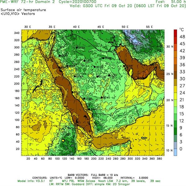 توقعت الهيئة العامة للأرصاد وحماية البيئة استمرار الانخفاض الطفيف والتدريجي في درجات الحرارة على عدة مناطق، اعتباراً من يوم غدٍ الخميس وحتى بداية الأسبوع المقبل.
