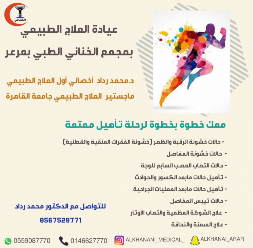 اعلان قسم العلاج الطبيعي مستوصف الخناني - صحيفة عرعر اليوم