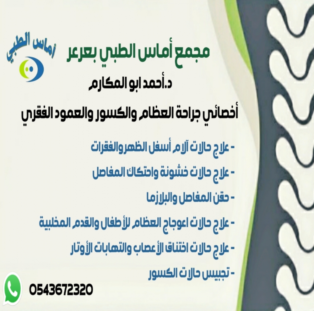 اعلان قسم العظام بمجمع اماس الطبي - صحيفة عرعر اليوم