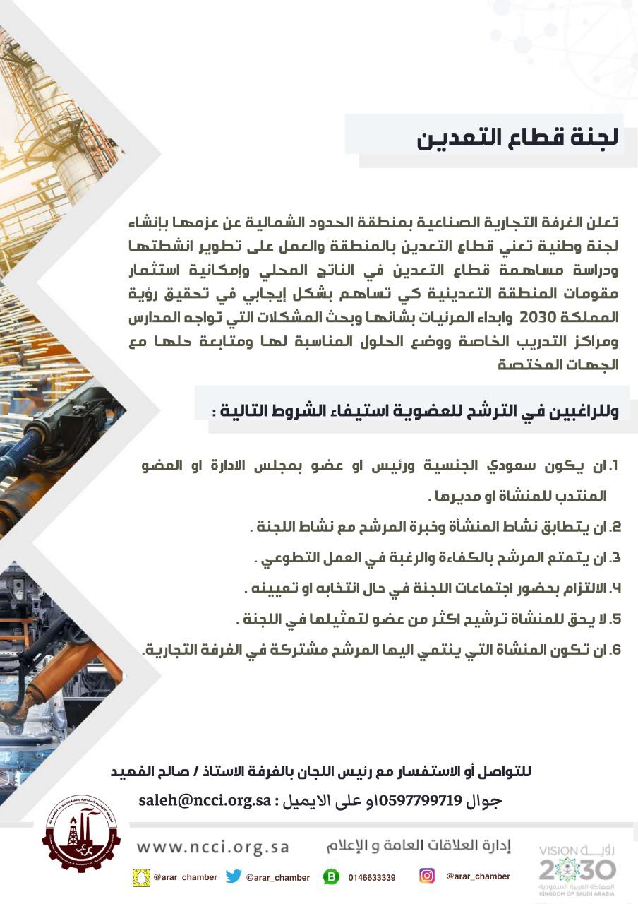 اعلان الغرفة التجارية الصناعية بالحدود الشمالية عن الترشح لعدد من اللجان - صحيفة عرعر اليوم