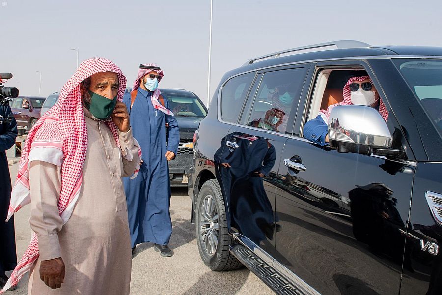 01-25-2021 07:47 PM عرعر اليوم:تفقد صاحب السمو الملكي الأمير فيصل بن خالد بن سلطان بن عبدالعزيز أمير منطقة الحدود الشمالية اليوم، قريتي قيصومة فيحان، وحدق الجندة ، في إطار زيارة سموه التفقدية لمدن ومراكز وقرى محافظة رفحاء لتفقد أحوال المواطنين والاطمئنان على جودة المشاريع والخدمات المقدمة لهم وحوكمتها ميدانياً.