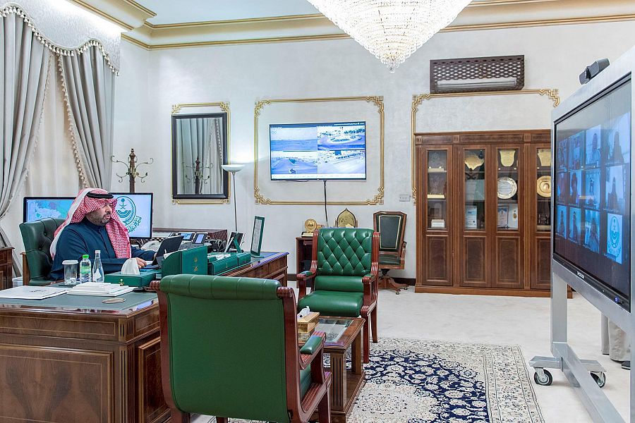 رأس صاحب السمو الملكي الأمير فيصل بن خالد بن سلطان بن عبدالعزيز أمير منطقة الحدود الشمالية عبر الاتصال المرئي، اجتماع القيادة والتحكم بالمديرية العامة للشؤون الصحية بالمنطقة، بحضور مدير الشؤون الصحية بالمنطقة عبدالله العازمي، والعديد من القيادات الصحية.