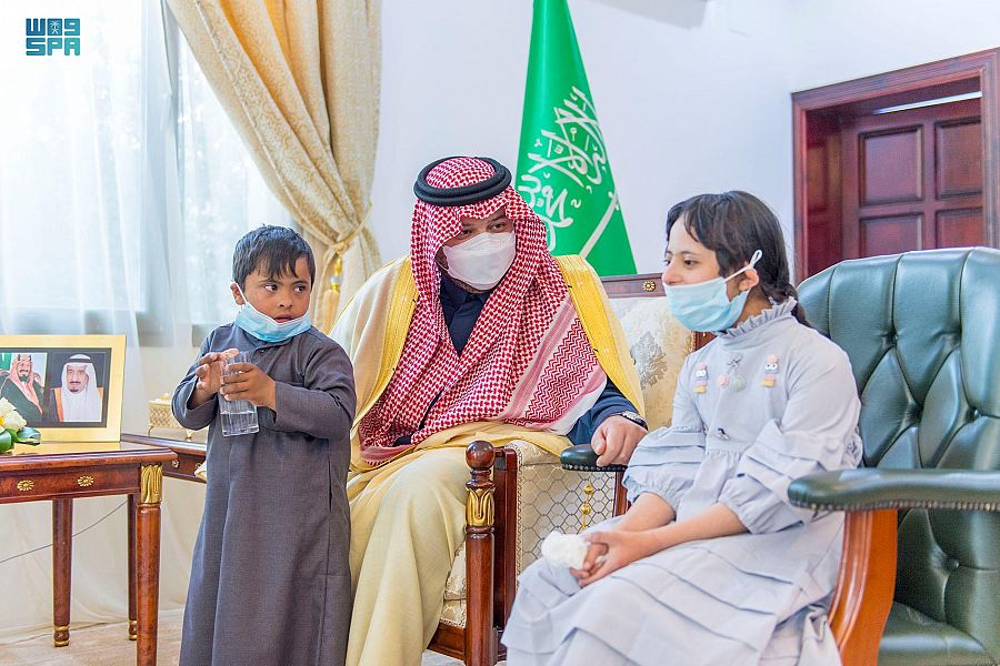 وناقش سموه خلال الاستقبال سبل تقديم البرامج التعليمية والمهنية لذوي متلازمة داون بمستوى متقدم وتأهيلهم للحياة والعمل وتعزيز القدرات والمواهب ليكونوا فاعلين في المجتمع.