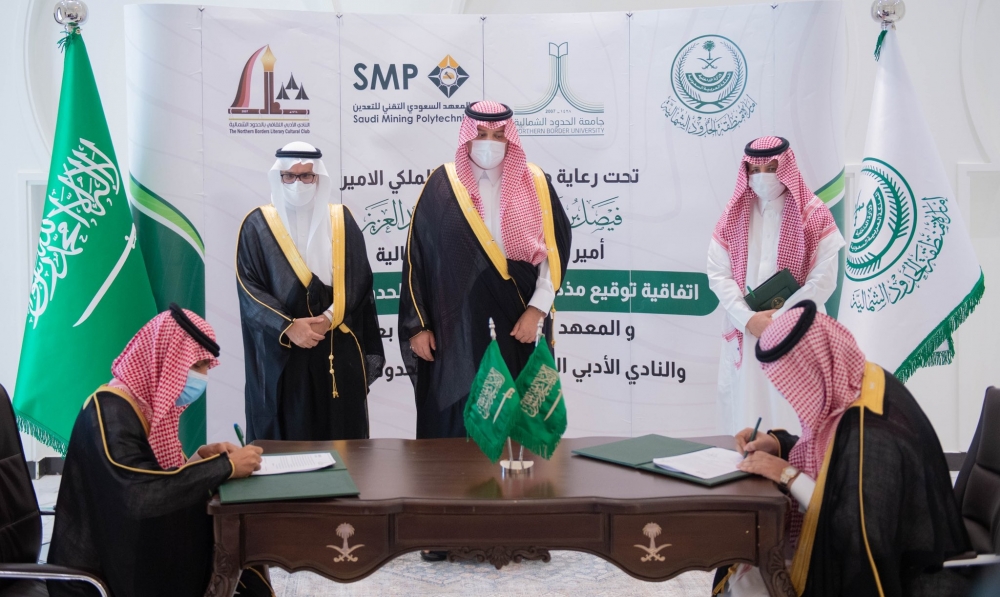 شهد صاحب السمو الملكي الأمير فيصل بن خالد بن سلطان بن عبدالعزيز أمير منطقة الحدود الشمالية اليوم، توقيع مذكرة التعاون بين جامعة الحدود الشمالية ومثلها وكيل الجامعة للتطوير والجودة وخدمة المجتمع الدكتور نايف بن فوزي الرويلي ، والمعهد السعودي التقني للتعدين بعرعر ومثله عبدالله بن عامر العتيبي .