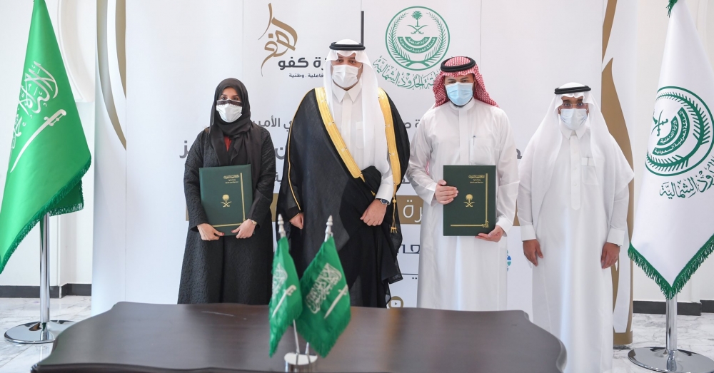 شهد صاحب السمو الملكي الأمير فيصل بن خالد بن سلطان بن عبدالعزيز أمير منطقة الحدود الشمالية بمقر الإمارة اليوم- توقيع الأمانة العامة لجائزة "كفو" في المنطقة , اتفاقيتَي تفاهم وتعاون مع شركة تأهيل التميز التجارية، ومؤسسة عبدالله السبيعي , وذلك في إطار تفعيل برنامج الشراكات المجتمعية في المنطقة.