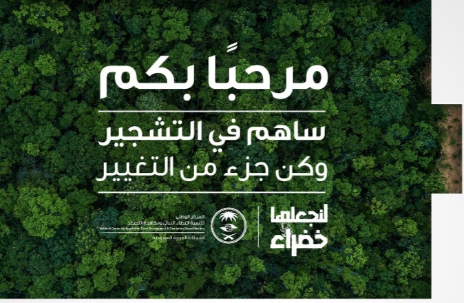 يطلق المركز الوطني للغطاء النباتي ومكافحة التصحر بمنطقة الحدود الشمالية يوم الاثنين القادم 2021/10/11 م حملة تشجير بالتعاون مع جمعية أمان البيئية بالمنطقة و تحت شعار (ساهم في التشجير وكن جزءا من التغيير، لنجعلها خضراء) .