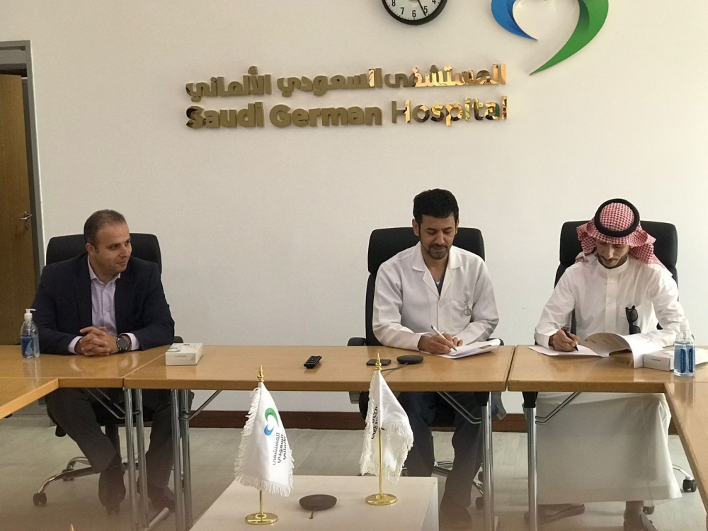 ومثل الجمعية رئيس مجلس ادارة الجمعية الاستاذ : الطرقي العنزي ومثّل مستشفى السعودي الألماني المدير العام الدكتور طارق الحقباني .