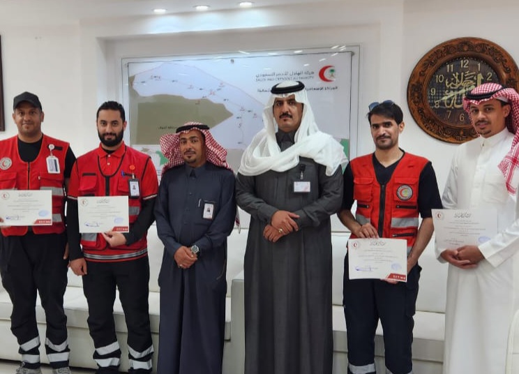 كرم مدير عام فرع هيئة الهلال الأحمر السعودي بمنطقة الحدود الشمالية بالإنابة الأستاذ : عبدالعزيز ملاح الأديهم ، وبحضور المساعد لشؤون الإسعافية الأستاذ : عمر محمد الياس حالات تميز ( أنعاش القلبي الرئوي) قام بها المسعفين بمباشرتها في الميدان تكللت ولله الحمد بالنجاح وهم :