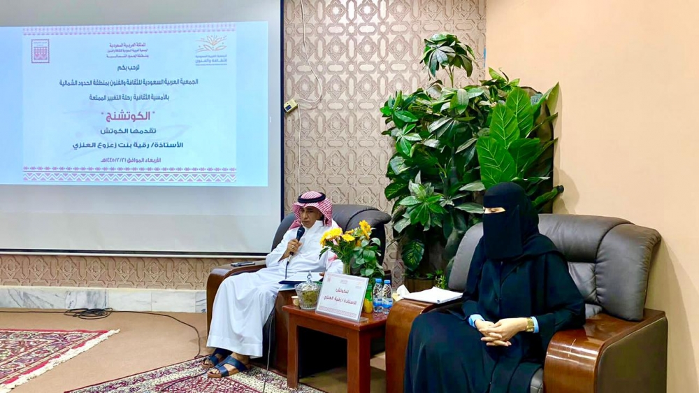 نظمت جمعية الثقافة والفنون بمنطقة الحدود الشمالية ضمن البرنامج الثقافي ندوة ثقافية بعنوان "الكوتشنج رحلة التغيير الممتعة" على مسرح الجمعية قدمتها الكوتش رقية العنزي كوتش محترف متقدم ومعتمد من الاتحاد الدولي للكوتشنج ICF .
