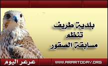 يقام في محافظة طريف منطقة الحدود الشمالية يوم الخميس 3/3/1433هـ مسابقة رسمية وذلك لكافه فئات الطيور ( الحر و الشاهين و الجير ) تحت اشراف وتنظيم بلدية محافظة طريف .