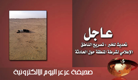 وفي تأكيد للحادثة قال الناطق الإعلامي بشرطة منطقة الحدود الشمالية العقيد بندر الإيداء أن شرطة محافظة رفحاء تبلغت مساء يوم الثلاثاء الموافق 18/5/1433هـ من مواطن ((28 سنه)) حول عثوره على جثه أمرأة شرق رفحاء بمنطقة صحراويه خارج النطاق العمراني .. وأضاف الإيداء تم انتقال المختصين من شرطة المحافظة والأدلة الجنائية والطبيب الشرعي لموقع الجثة الواقعة شمال الطريق الدولي قرابة 2200 متر وتم إجراء المعاينة اللازمة للموقع ونقل الجثمان للمستشفى للكشف الطبي الشرعي , ومن المبكر تحديد هوية المتوفاة وسبب الوفاة .