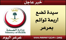 بعد توقف عن الانجاب لمدة ثلاث سنوات أنجبت سيدة سعودية بمستشفى عرعر المركزي أربعة توائم ولدان وبنتان بعد عملية قيصرية صباح هذا اليوم السبت الموافق 9/10/1431هـ وقد توفي أحد الأبناء وصحة بقية التوأم مستقرة ووضعهم مستقر .